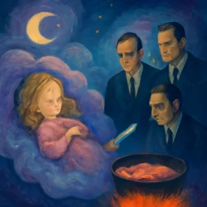 꿈속에서 모르는 남성들, 정장, 어린 여성, 그리고 인육 요리라는 매우 충격적이고 강렬한 이미지가 등장하는 것은 깊은 잠재의식이 불안, 공포, 그리고 통제력 상실의 감정을 반영하고 있음을 나타냅니다.