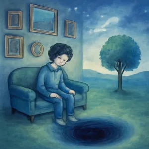 만약 꿈 속에서 이 검은 공간에서의 침잠과 고독 속에서 편안함이나 안정감을 느꼈다면, 이는 내면에서 자신의 진짜 감정과 맞닥뜨리고 자기 자신과 화해, 또는 심리적 재정비 과정을 겪고 있음을 암시합니다.