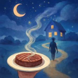 이 꿈에서는 집으로 가는 길, 정육점, 그리고 익힌 소고기가 주요 등장물입니다.