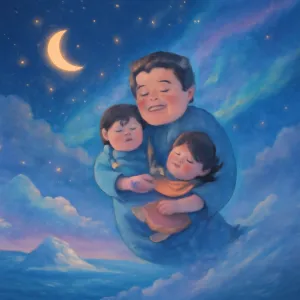 아버지와 동생과 함께한 하늘 여행은 비록 꿈속에서만 가능했지만, 그 따뜻한 팔 안에서 느낀 안전함은 마음속 깊이 간직된 사랑의 힘입니다.
