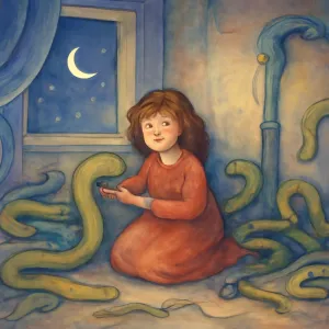 뱀의 크기가 지렁이 정도로 쪼그라든 모습: 문제가 처음에 생각했던 것보다 작거나 덜 위협적일 수 있음을 나타냅니다.