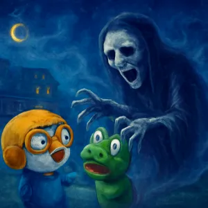 집앞 놀이터에 있는데 뽀로로와 크롱이 있었어 그 앞에는 징그러운 귀신이 있었는데 팔을 뜯어가는거 같았어 그 고통이 선명하게 느껴졌어 [꿈해몽]