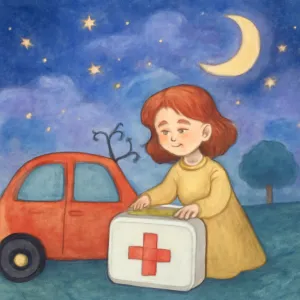차 안에서 구급 상자를 옮기는 행위는 스스로 문제를 해결하려 하는 적극적인 자세와 책임감을 상징합니다.