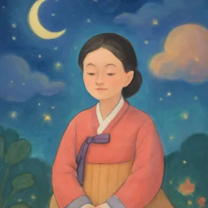 고운 한복을 입은 모습은 고귀함과 고요한 사랑을 상징하며, 고인이 여전히 당신 곁에 정서적으로 존재함을 나타냅니다.
