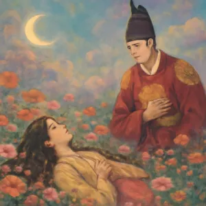 꿈에서 조선 왕 같은 인물이 등장하는 장면과 꽃밭이라는 배경, 그리고 그 인물이 당신에게 사랑을 고백하는 상황은 매우 상징적이며, 다양한 의미를 내포할 수 있습니다.