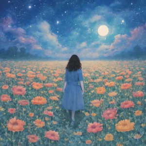 꿈에서 끝없는 꽃밭을 걷는 장면은 매우 풍부한 상징성과 깊은 감정을 내포하고 있습니다.