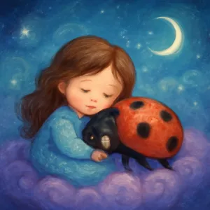 꿈속에서 무당벌레와 친구가 되는 모습, 마음 깊은 곳에 따뜻함과 희망이 피어나는 것 같습니다.