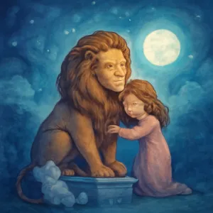 사자는 꿈에서 매우 파워풀한 힘, 용기, 보호를 상징하나, 조각상으로 나타난다는 점은 그것이 현실에서 고정화되거나 억제된 감정 혹은 잠재된 위협으로 해석될 수 있습니다.