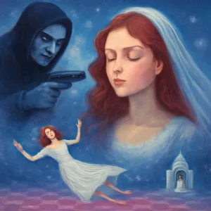 강도와 총이라는 위험한 상징과 결혼식장, 젤리 땅이라는 안전과 즐거움, 새로운 출발이 공존하는 꿈은 당신의 삶에서 복잡한 감정의 교차점 또는 중요한 전환기임을 암시할 수 있습니다.