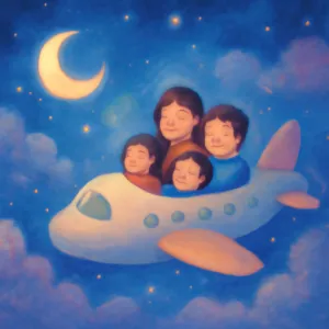 돌아가신 어머니와 가족이 함께 비행기 여행을 떠나는 꿈은 매우 상징적이며 감정이 풍부한 내용입니다.