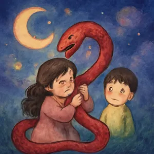 당신이 오빠와 함께 집 안에 뱀이 들어오자, 뱀과 싸우며 오빠를 지키는 모습은 보호 본능과 함께 현재 혹은 과거의 관계에서 느끼는 강렬한 감정과 갈등을 반영합니다.