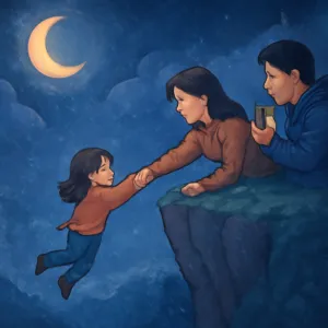 특히 부모 중 한 분이 그 장면을 동영상으로 찍는 모습은, 어려움 앞에서의 무심함, 객관적인 관찰자 역할, 혹은 개인적인 어려움을 외부에 드러내는 내면의 갈등일 수도 있습니다.