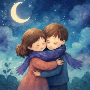 그리고 그 남자아이가 목도리를 해주는 것은 보호, 다정함, 그리고 상대의 관심과 배려를 받아들이는 느낌을 나타냅니다.