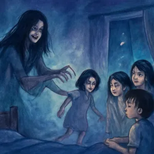 특히, 그 귀신이 친구 중 한 명을 데려가는 장면은 주변인들과의 관계에서 잃음이나 변화, 혹은 통제할 수 없는 상황에 대한 공포감을 나타냅니다.