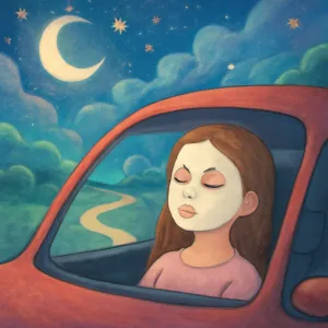 이 꿈은 차를 타고 이동하는 상황과 마스크팩을 하는 행동이라는 두 가지 주요 요소로 구성되어 있습니다.