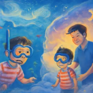 꿈속에서 스노클링을 하면서 아빠와 몰래 즐기는 장면은 가족과의 비밀스러운 경험이나 가족 간의 신뢰와 소통 강화에 대한 갈망으로 해석될 수 있습니다.