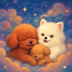 친구가 키우는 갈색 푸들이랑 흰 포메라니안, 그리고 그 사이에 나온 강아지가 내 품을 파고들며 장난치는 꿈을 꿨어 몽글몽글하고 굉장히 행복했어 [꿈해몽]