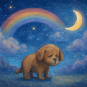 현실에서 강아지가 무지개 다리를 건넜다는 사실이 당신의 마음에 큰 울림을 주었고, 그 감정이 꿈으로 표출된 것으로 해석됩니다.