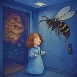 하지만 엘리베이터 안까지 말벌 한 마리가 따라와서 쏘지는 않고 독침에서 독을 뿜는 모습은, 피해는 입지 않았으나 공포와 위협감, 지속적인 긴장 상태가 끝나지 않고 마음속에 남아 있음을 암시합니다.