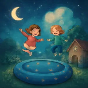 꿈 속에서 당신은 밤에 마당에서 친구들과 방방이 뛰며 즐거움을 느꼈지만, 한편으로는 엄마에게 알리지 않아 생길 불안감과 걱정도 함께 경험하고 있습니다.