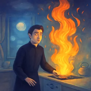꿈에서 검은옷을 입은 젊은 신부님이 부엌에서 가스불을 켜는 장면과 그로 인해 거대한 불길이 일어나는 모습은 매우 강렬한 상징을 담고 있습니다.