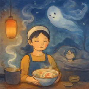 또한 국수 가게는 친근한 일상과 공동체적 연대를 상징하며, 개인의 사회적 역할과 책임감을 암시합니다.
