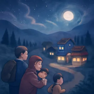 꿈속에서 가족과 함께 산으로 피난 가는 장면은 안전, 보호, 그리고 어려운 상황에서의 생존 본능을 나타냅니다.