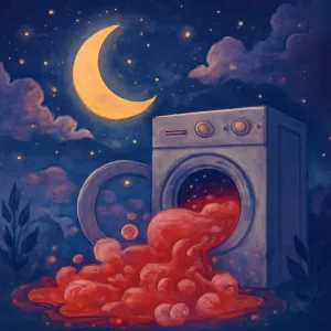 비슷한 꿈으로는 피가 나는 장면, 붉은 액체, 거품이 많이 생기는 물, 무언가가 세탁기 밖으로 넘쳐 흐르는 상황이 있습니다.