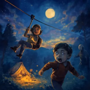 짚라인을 타고 도망가는 장면은 빠른 결정을 내리고 곤란한 상황에서 벗어나려는 강한 욕망을 나타냅니다.