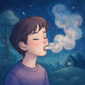이 꿈은 문구점, 껌처럼 씹는 물건, 그리고 입에서 나오는 연기가 중요한 상징으로 나타납니다.