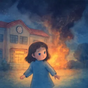 꿈속에서 학교, 화재경보 사이렌, 정전, 그리고 검은 연기가 등장하는 상황은 매우 강렬하고 상징적인 이미지입니다.