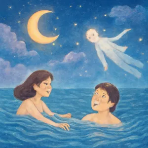부부는 긴밀한 관계와 협력, 감정적 유대감을 상징하며, 함께 수영하는 장면은 공동의 여정이나 인생의 도전을 나타냅니다.