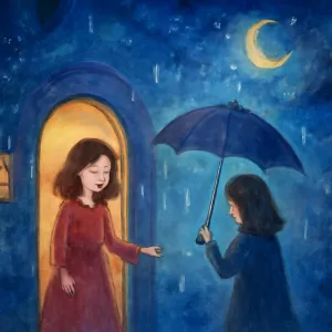 개인적으로는 우산을 준 여성이 가족, 친구, 혹은 자신 내면의 자애로운 부분일 수 있으므로, 꿈을 꾼 사람의 인간관계나 자기 자신과의 대화를 돌아볼 필요가 있습니다.