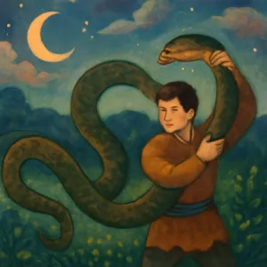 큰 뱀 잡기: 문제나 두려움을 직접 직면하거나 제어하려는 의지, 혹은 억압된 감정과 갈등을 해결하려는 시도를 상징합니다.