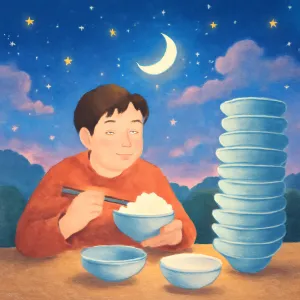 꿈에서 지인이 많은 밥을 먹고 빈 그릇만 쌓여 있는 장면은 다양한 감정과 상징을 담고 있습니다.