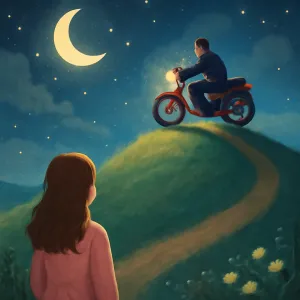 꿈에서 만난 돌아가신 남편은 당신이 힘들 때 곁에 있다는 무언의 위로이며, 오토바이를 타고 언덕 위로 올라가는 모습은 당신 역시 자신의 길을 힘차게 나아갈 수 있는 용기와 의지를 갖고 있음을 상기시켜줍니다.