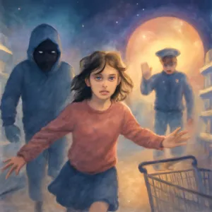 경찰에 신고하는 행위는 도움 요청이나, 스스로 문제에 맞서려는 의지를 나타내며, 마트는 사람들이 모이는 공공장소로, 안전과 사회적 연결을 찾으려는 시도를 상징할 수 있습니다.