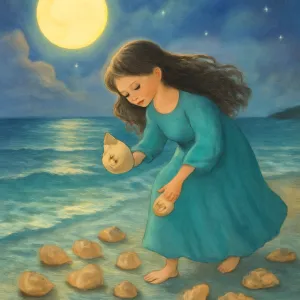 바다는 감정과 무의식의 바다로, 소라를 줍는 행위는 자신의 내면 깊이에서 숨겨진 감정이나 잠재력을 발견하려는 시도일 수 있습니다.