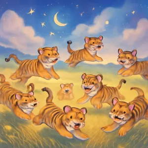 당신의 꿈에 등장한 7마리 새끼 호랑이가 넓은 들판에서 자유롭게 뛰어노는 모습은 매우 강력하고 긍정적인 상징을 담고 있습니다.