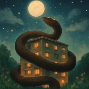 아파트, 즉 가족의 공간을 감싸는 구렁이는 보호와 소속감을 나타냅니다.