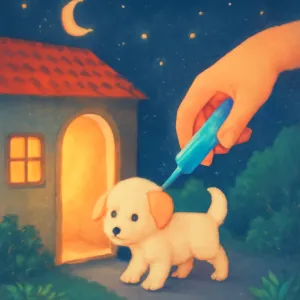 주사는 흔히 치유, 변화, 변형의 상징으로 꿈에 등장하며, 머리는 생각과 인식의 중심이므로, 이 행위는 강아지를 통해 내면의 감정이나 관계에서 어떤 변화를 시도하려는 내적인 의지를 나타낼 수 있습니다.