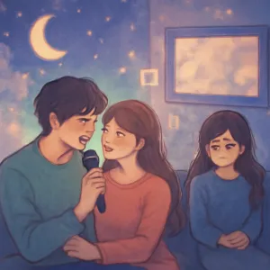 꿈 속에서 당신은 친구들과 노래방에서 즐거운 시간을 보내고 있지만, 동시에 두 친구 사이의 미묘한 감정의 파도가 드러납니다.