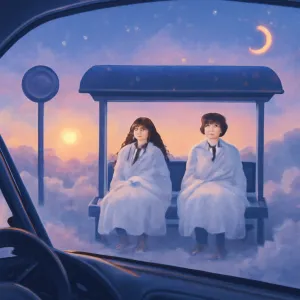 차를 타고 누군가와 가는데 버스정류장에서 여자 한명과 남자 한명이 버스정류장에있는 좌석에 흰 이불을 각자 덮고 아침에 일어나는 모습을 차를 타면서 지나갔다. [꿈해몽]