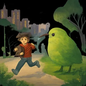 공원과 대형 초록 새의 상징 의미 🌳🦜