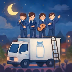 우유는 전통적으로 ‘순수함’, ‘영양’, ‘보살핌’을 상징하며 트럭 안은 이동과 변화, 혹은 ‘새로운 장소’로의 여행과 연결될 수 있습니다.