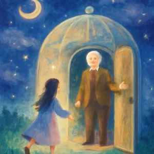 특히, 아버지와 함께 있는 돔(구조물) 안에서 홀대를 받다가 마지막에 문을 열어 주어 나오는 상황은 가족 관계, 감정의 억압, 갈등 해결과 관련된 상징적 메시지일 수 있습니다.