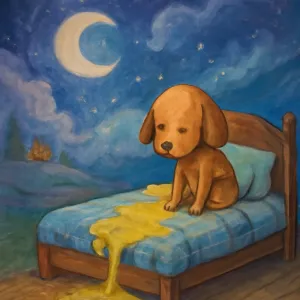 반려견이 침대에 소변을 본다는 장면은 신뢰와 편안함이 깨지는 상황을 대변하며, 가까운 사람 혹은 자신 내면의 갈등과 문제로 인해 마음이 혼란스러워진 상태를 의미할 수 있습니다.