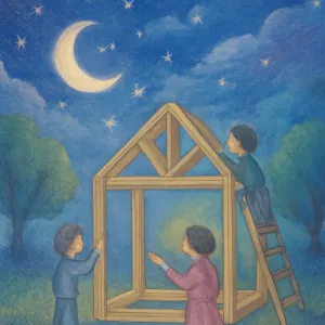 이 꿈에서 사람들이 모여 나의 건물을 만들어주는 모습과 내 방에 나무틀을 설치하는 장면은 개인의 삶에서 새로운 시작이나 성장, 변화의 상징일 수 있습니다.