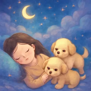 품 속으로 와서 귀여운 강아지 두 마리와 교감하며 행복함을 느꼈다면, 이는 여러분의 삶에 사랑, 안정, 긍정적 관계가 다가오고 있음을 암시합니다.