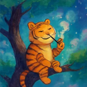 비슷하게, 호랑이가 공격적이거나 위협적으로 보이지 않고 오히려 여유롭게 담배를 피우며 웃는 모습은 때로는 분노의 해소, 도전의 유희적 수용, 혹은 내면의 힘을 긍정적으로 받아들이는 과정을 나타냅니다.